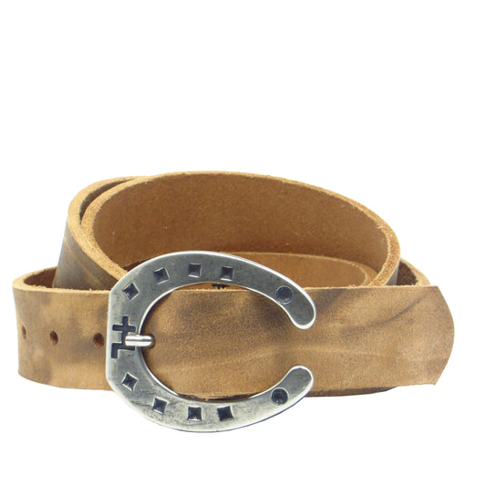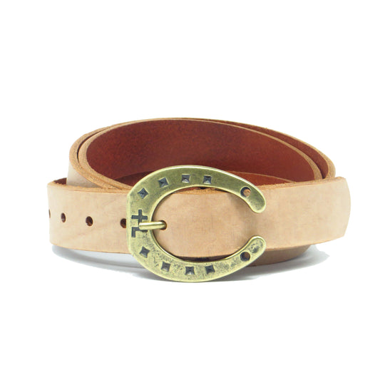 Ledergürtel 3 cm breit natur Büffelleder mit Hufeisenschnalle