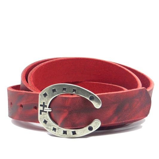 Ledergürtel 3 cm breit rot Büffelleder mit Hufeisenschnalle