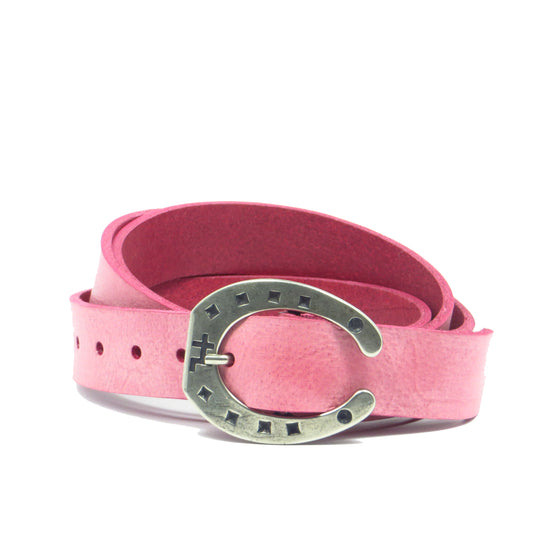 Ledergürtel 3 cm breit pink Rindsleder mit Hufeisenschnalle