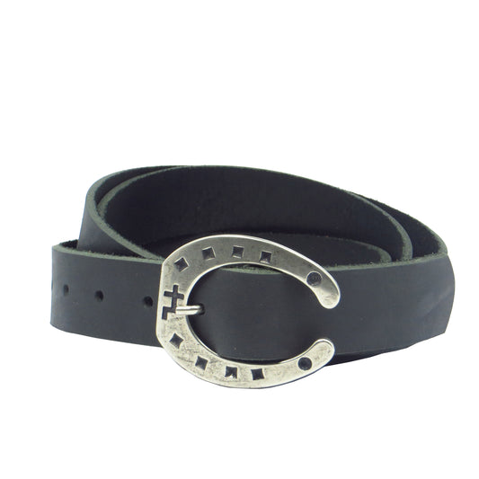 Ledergürtel 3 cm breit schwarz Büffelleder mit Hufeisenschnalle