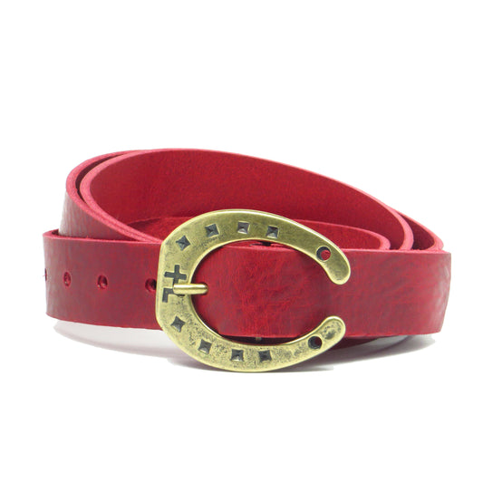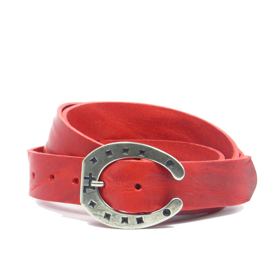 Ledergürtel 3 cm breit rot Rindsleder mit Hufeisenschnalle
