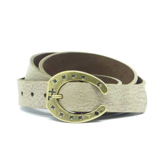 Ledergürtel 3 cm breit schlamm grau braun Rindsleder mit Hufeisenschnalle