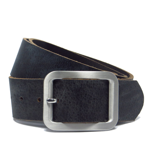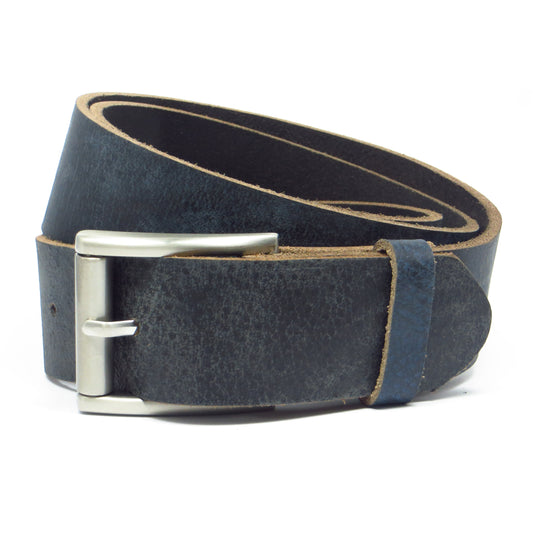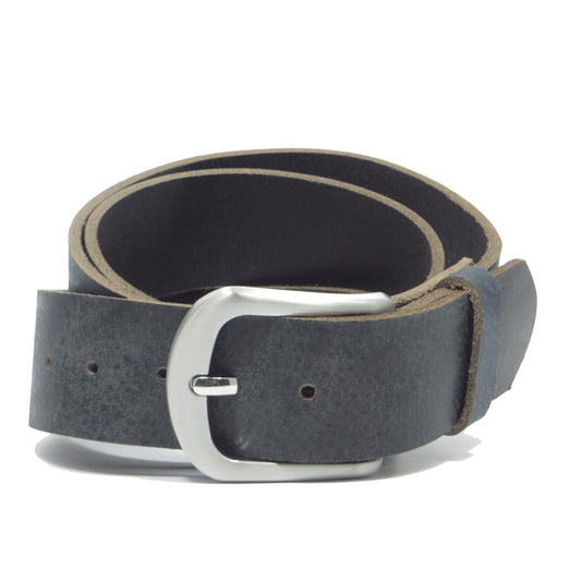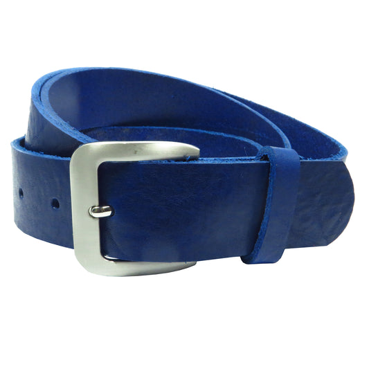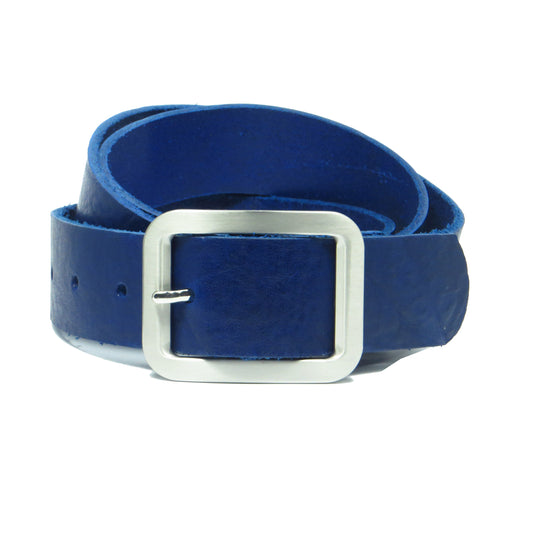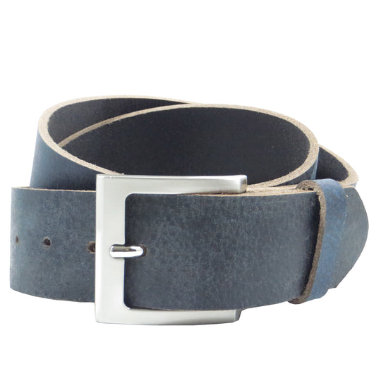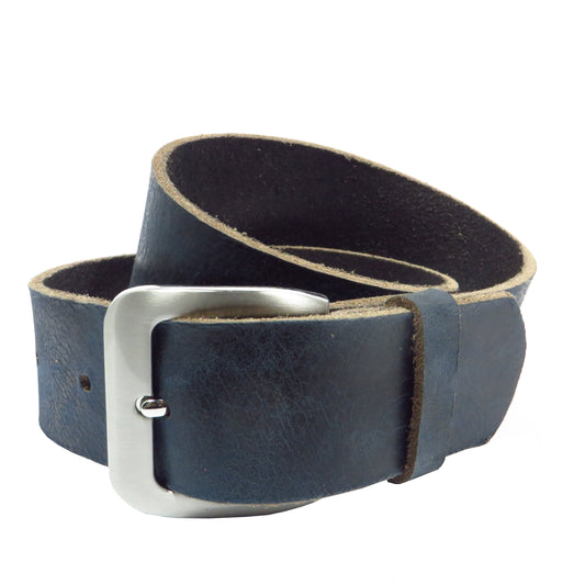 Ledergürtel 4 cm breit blau Büffelleder mit Hufeisenschnalle Silber