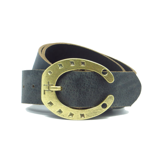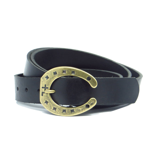 Ledergürtel 3 cm breit schwarz Büffelleder mit Hufeisenschnalle