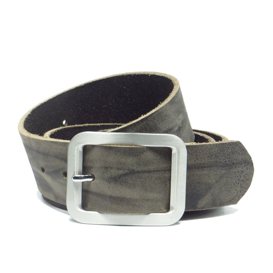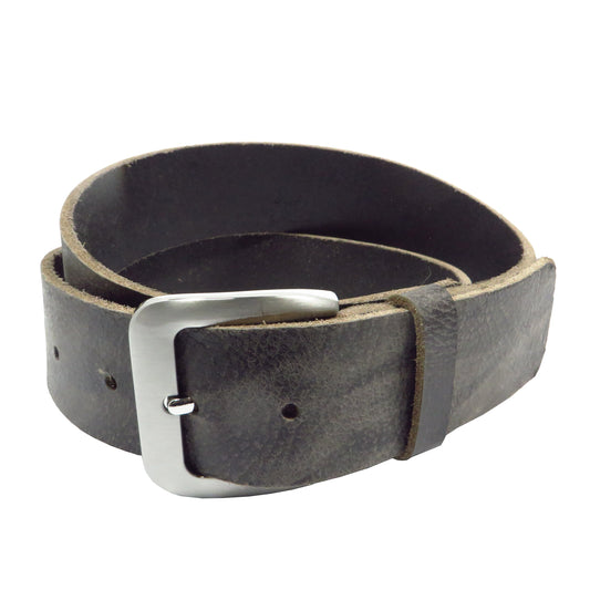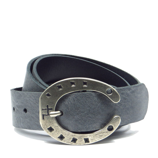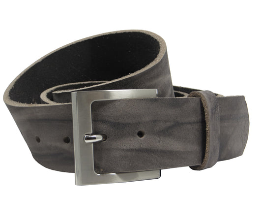 Ledergürtel 4 cm breit grau Büffelleder mit Hufeisenschnalle Silber