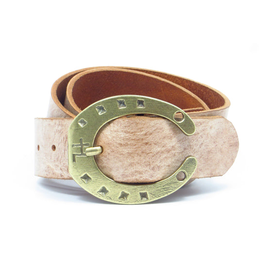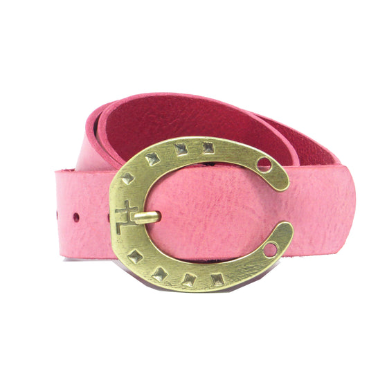 Ledergürtel 4 cm breit rosa Rindsleder mit Hufeisenschnalle messing