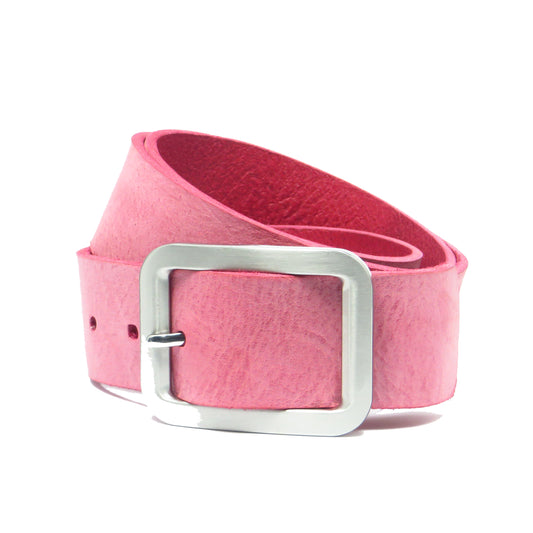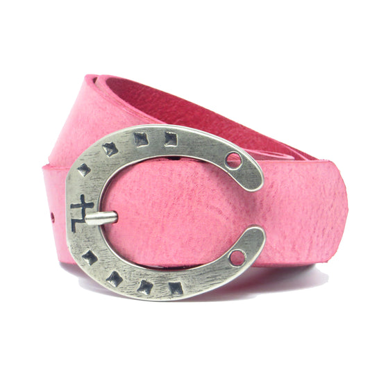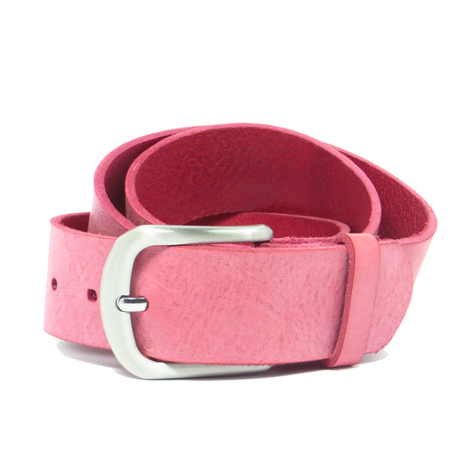Ledergürtel 4 cm breit rosa Rindsleder mit Hufeisenschnalle Silber