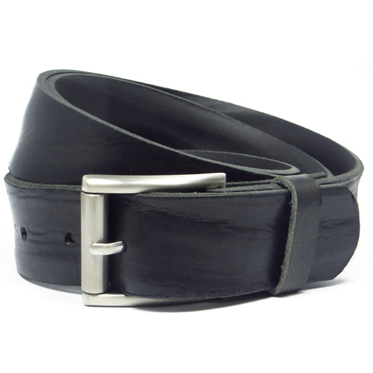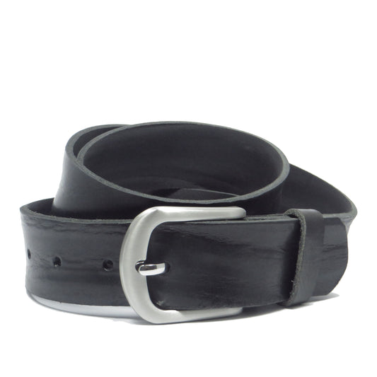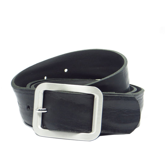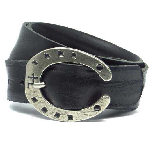 Ledergürtel 4 cm breit schwarz Büffelleder mit Hufeisenschnalle Silber