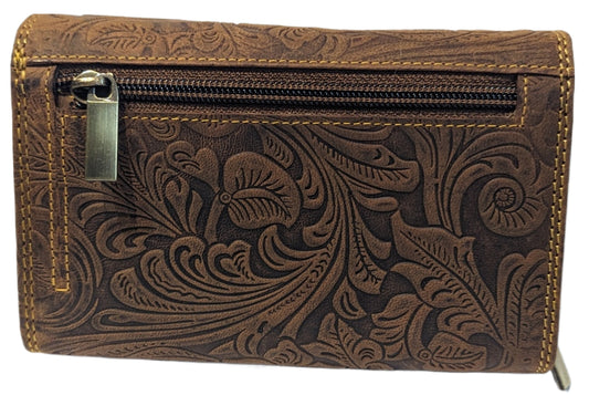 Geldbörse für Damen Portomonaie Blumenmuster Büffelleder braun dunkelbraun schwarz