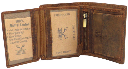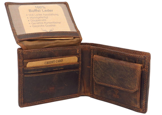 Geldbörse für Herren braun Büffelleder Querformat mit RFID Diebstahlschutz MW-216-BHU