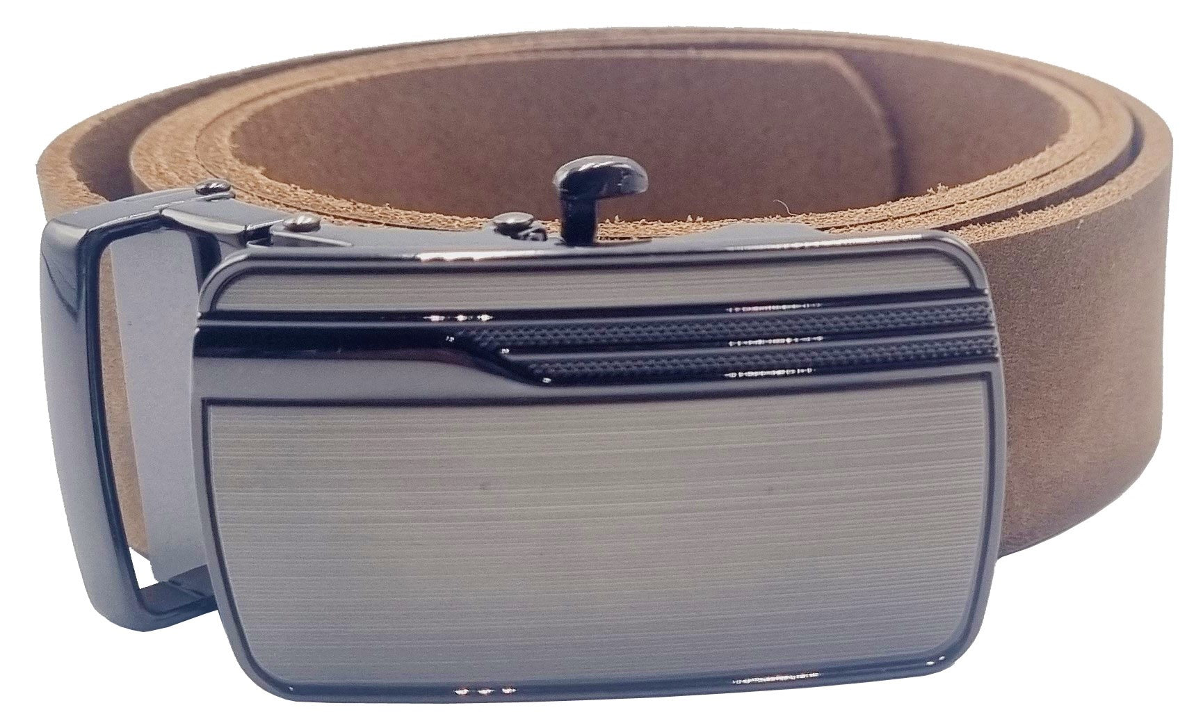 Der Automatik Gürtel in brauner Farbe bietet eine einzigartige Passform, ohne aufwendiges Lochstechen. Er lässt sich einfach durch Durchschieben anpassen und bietet dennoch eine sichere Passform. Der Gürtel ist besonders robust und langlebig und somit perfekt für den täglichen Gebrauch geeignet.