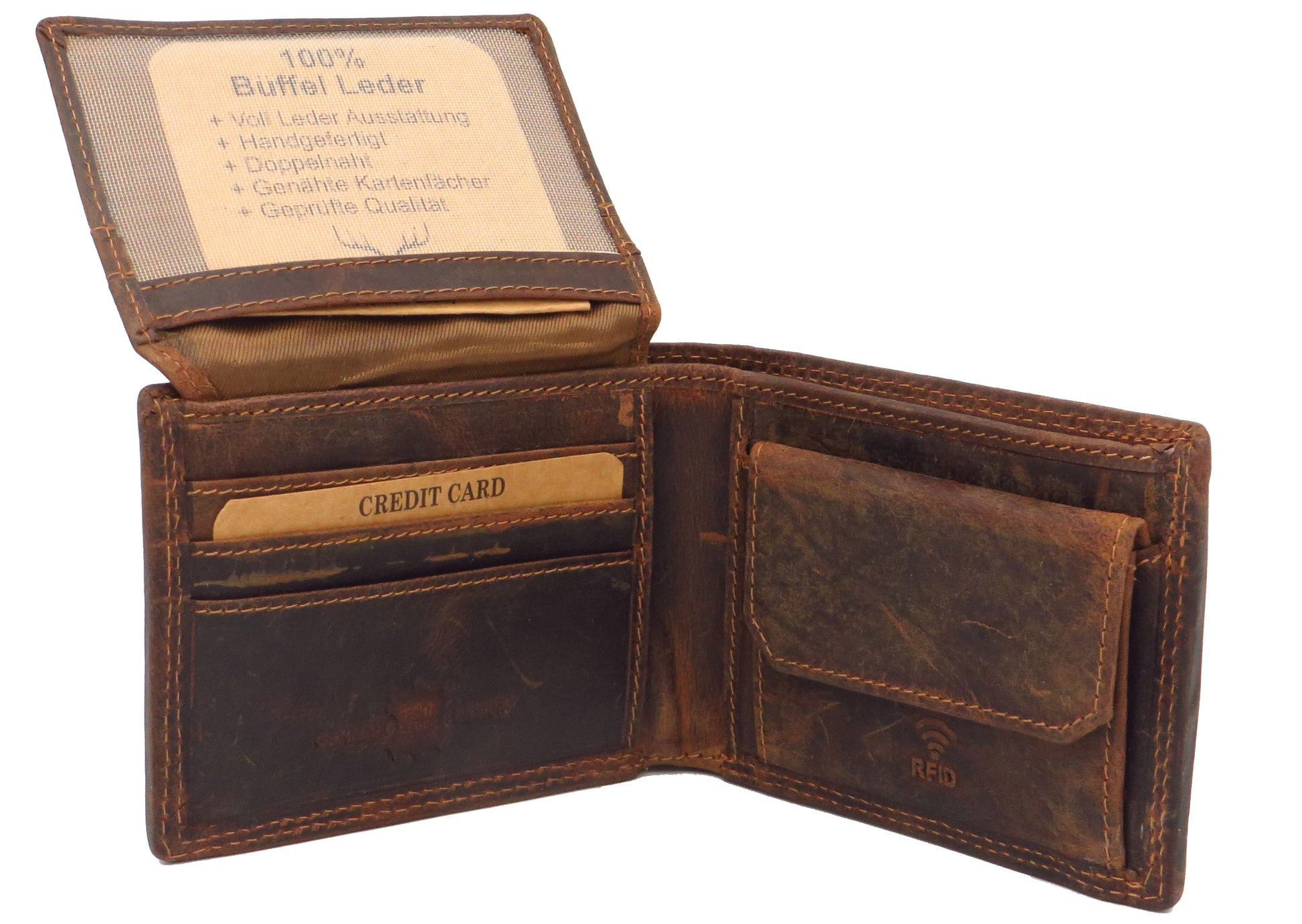 Geldbörse für Herren braun Büffelleder Querformat mit RFID Diebstahlschutz MW-212-BHU