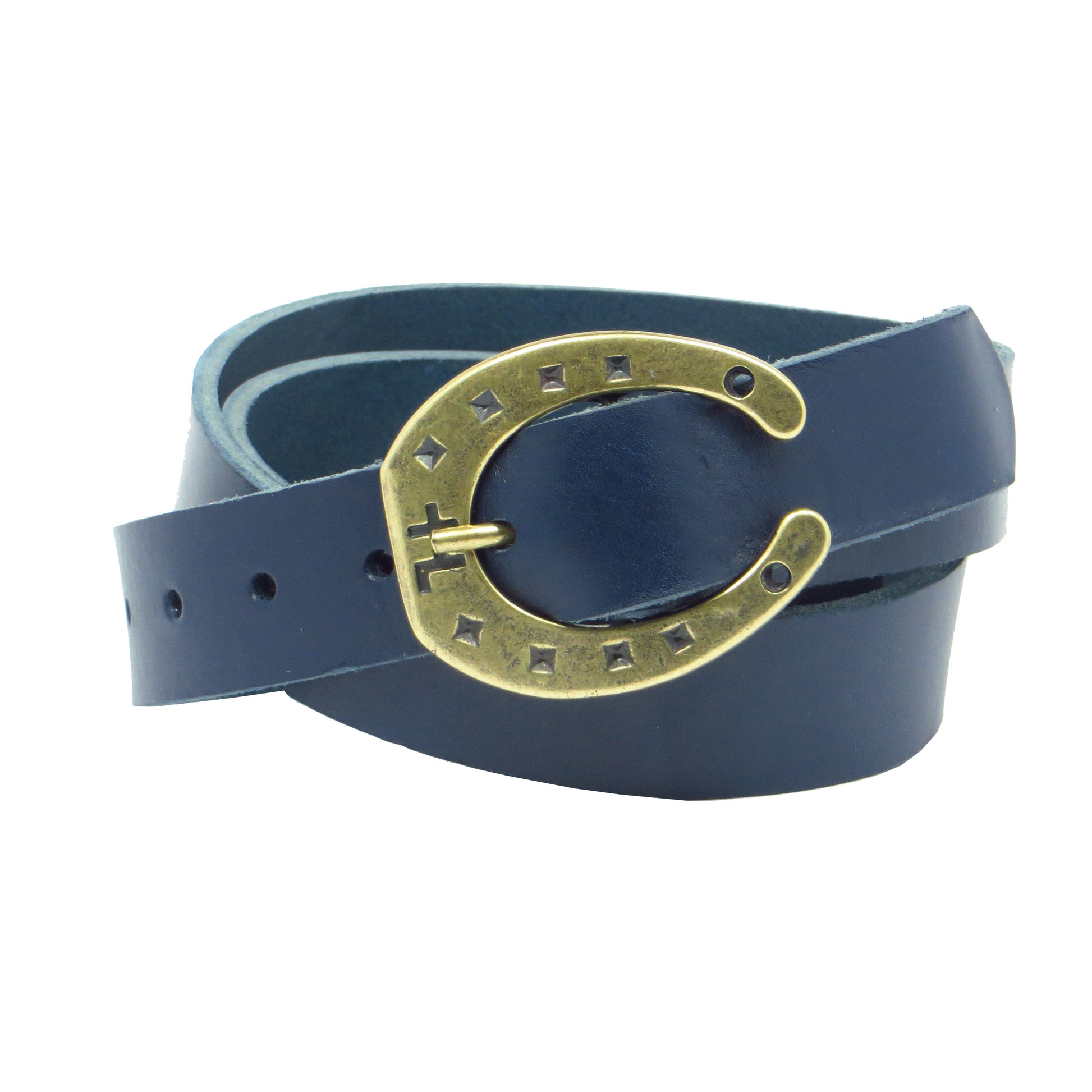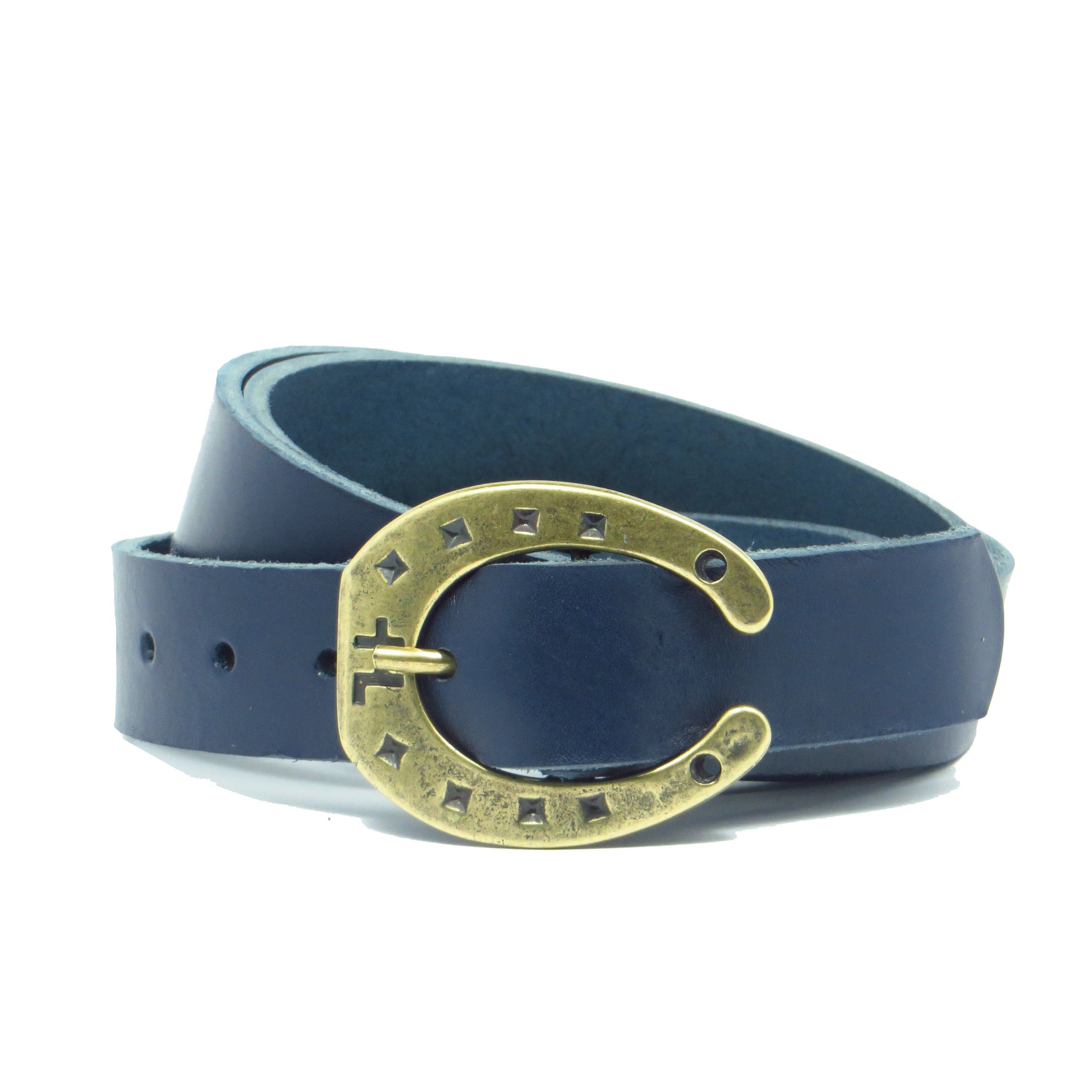 Ledergürtel 3 cm breit dunkelblau Rindsleder mit Hufeisenschnalle