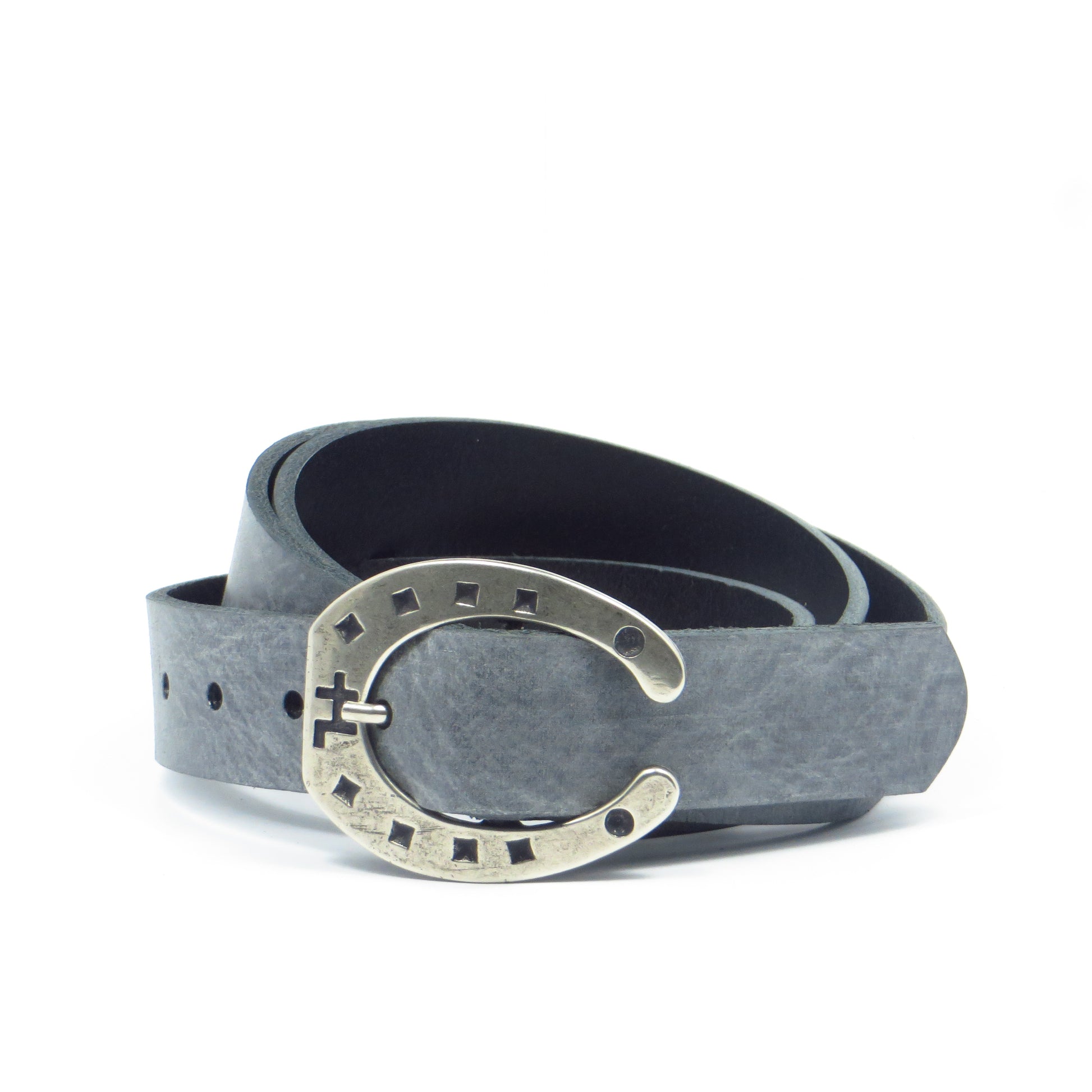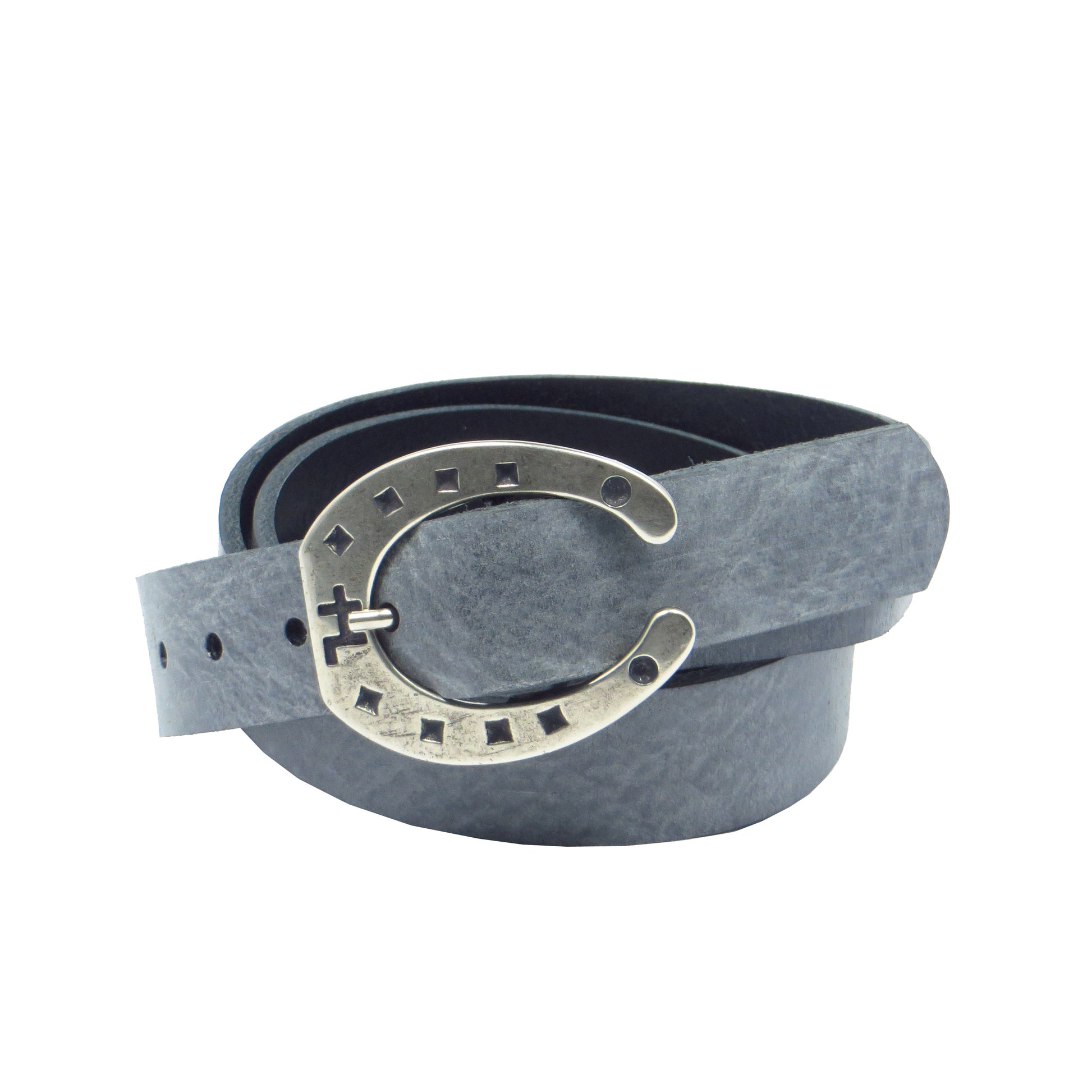 Ledergürtel 3 cm breit dunkelgrau Rindsleder mit Hufeisenschnalle