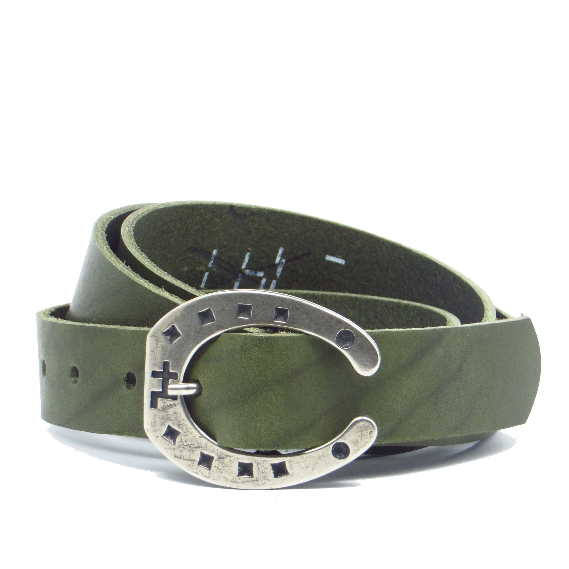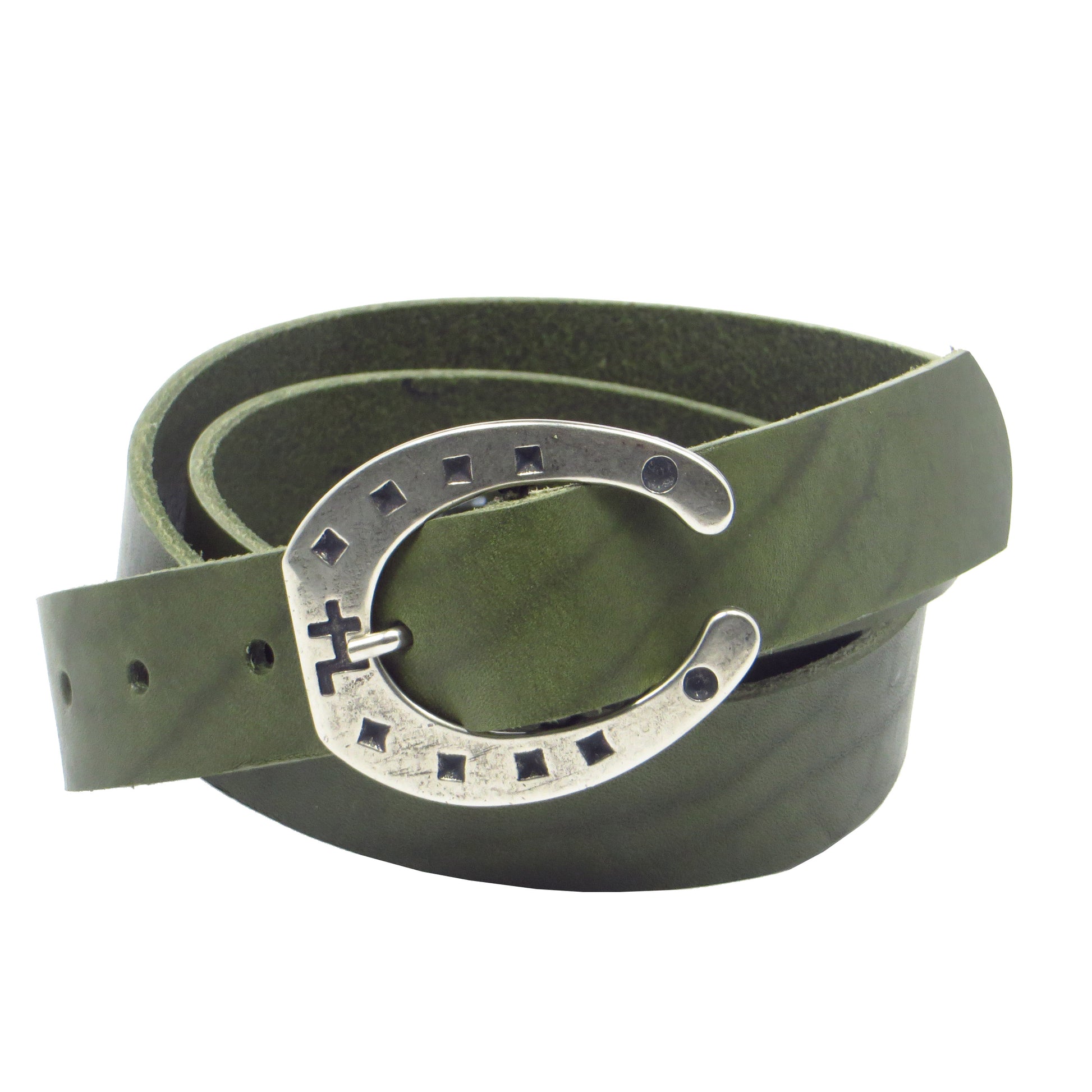 Ledergürtel 3 cm breit grün Rindsleder mit Hufeisenschnalle
