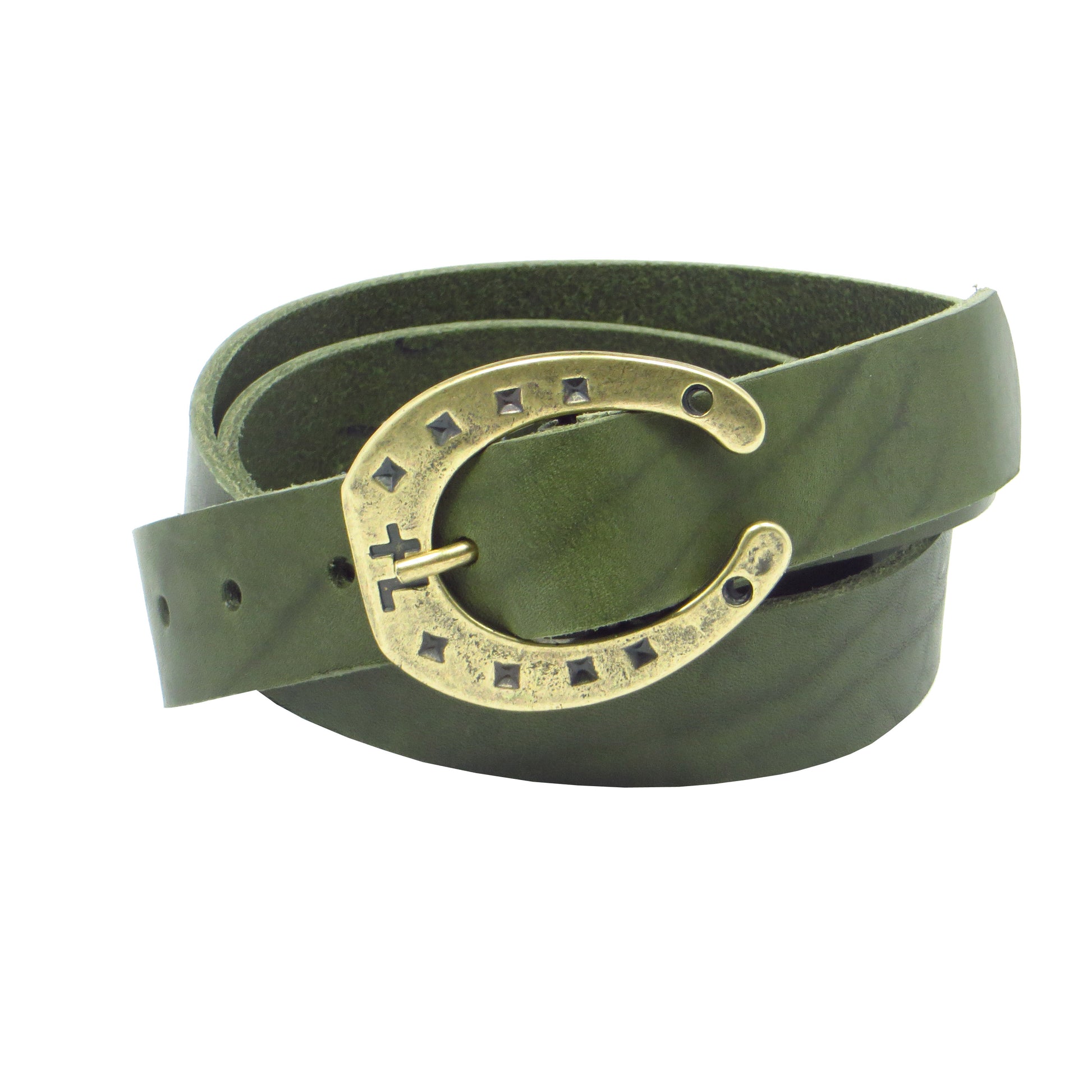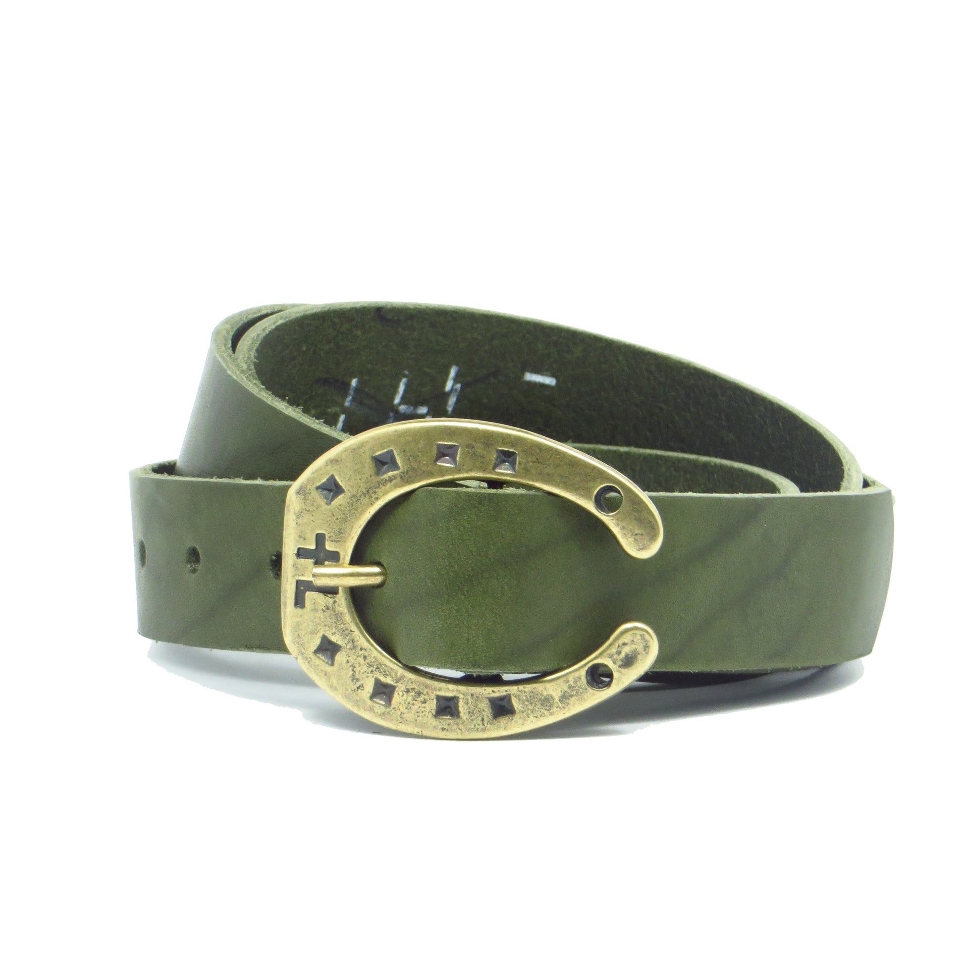 Ledergürtel 3 cm breit grün Rindsleder mit Hufeisenschnalle