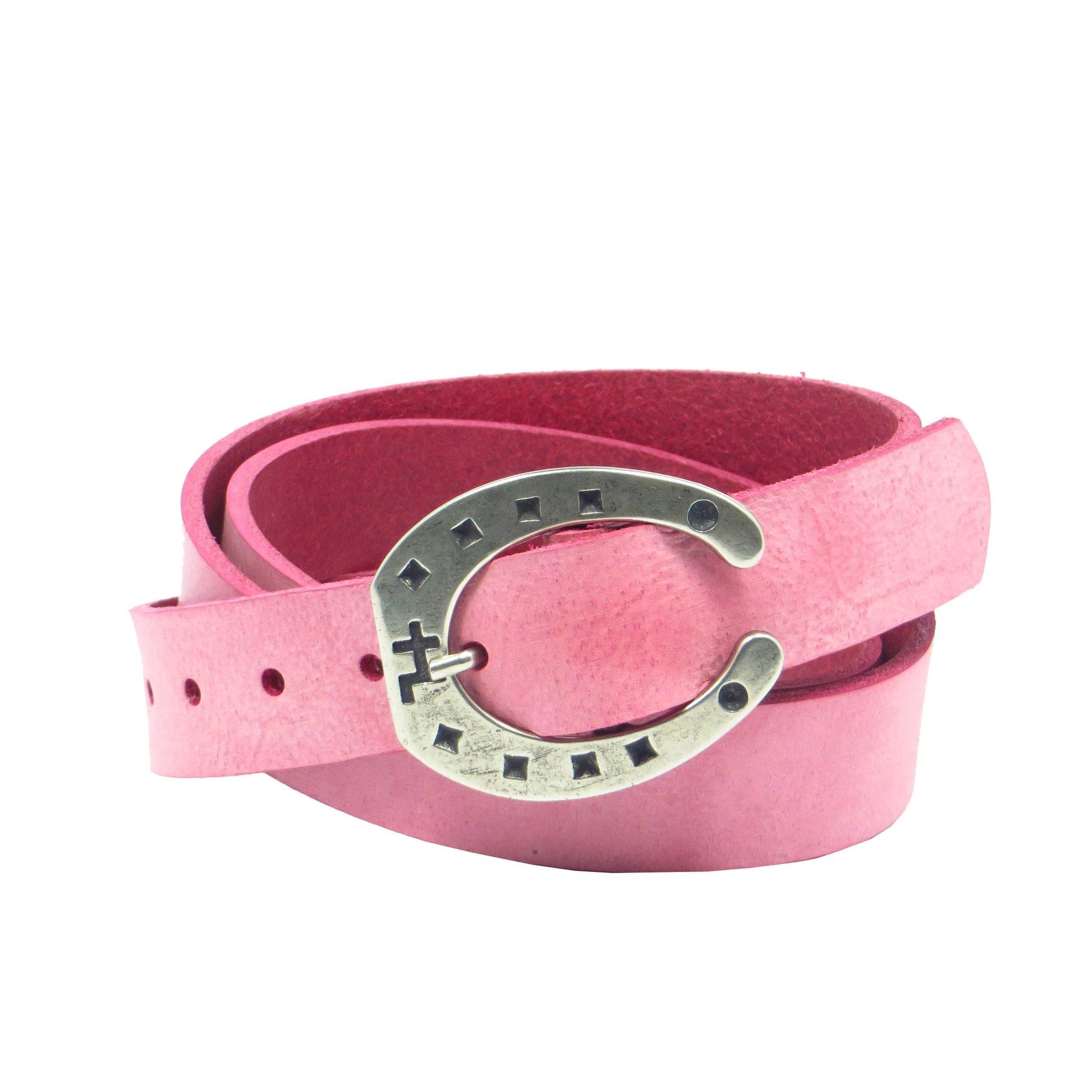 Ledergürtel 3 cm breit pink Rindsleder mit Hufeisenschnalle