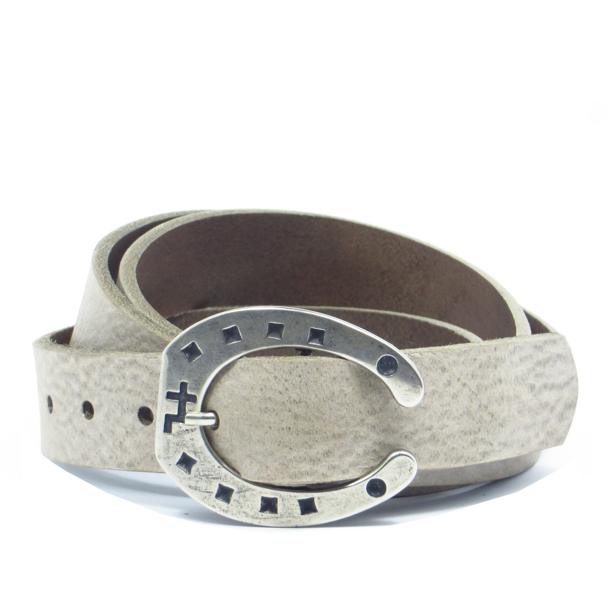 Ledergürtel 3 cm breit schlamm grau braun Rindsleder mit Hufeisenschnalle