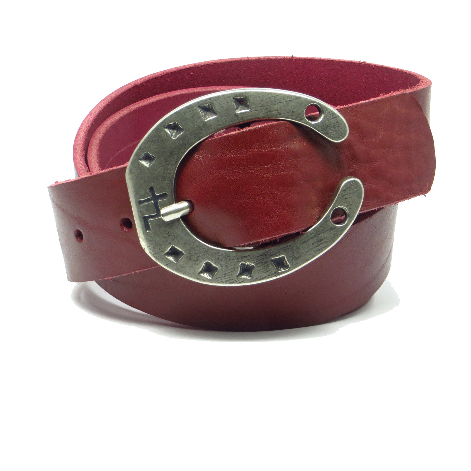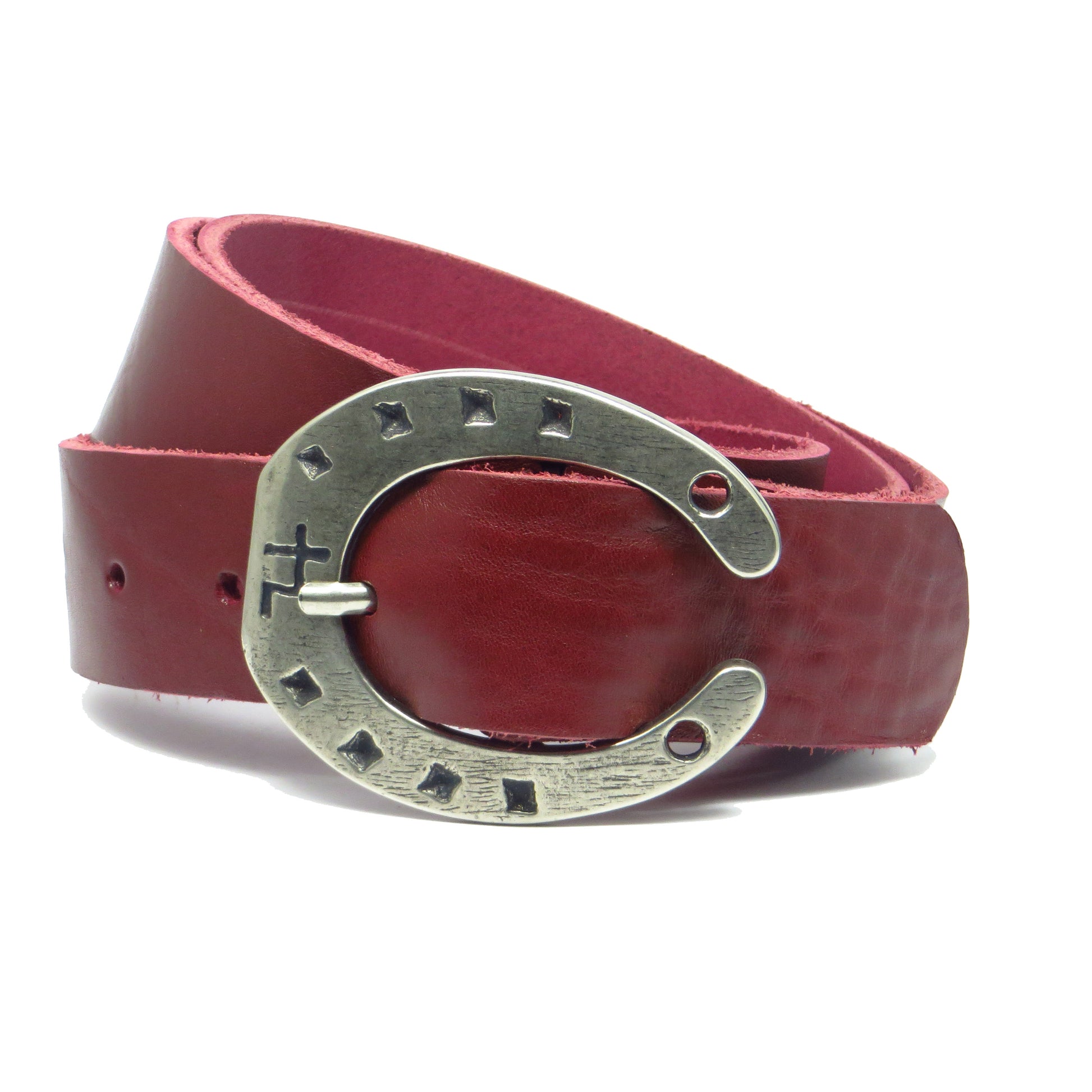 Ledergürtel 4 cm breit bordeaux rot Rindsleder mit Hufeisenschnalle Silber