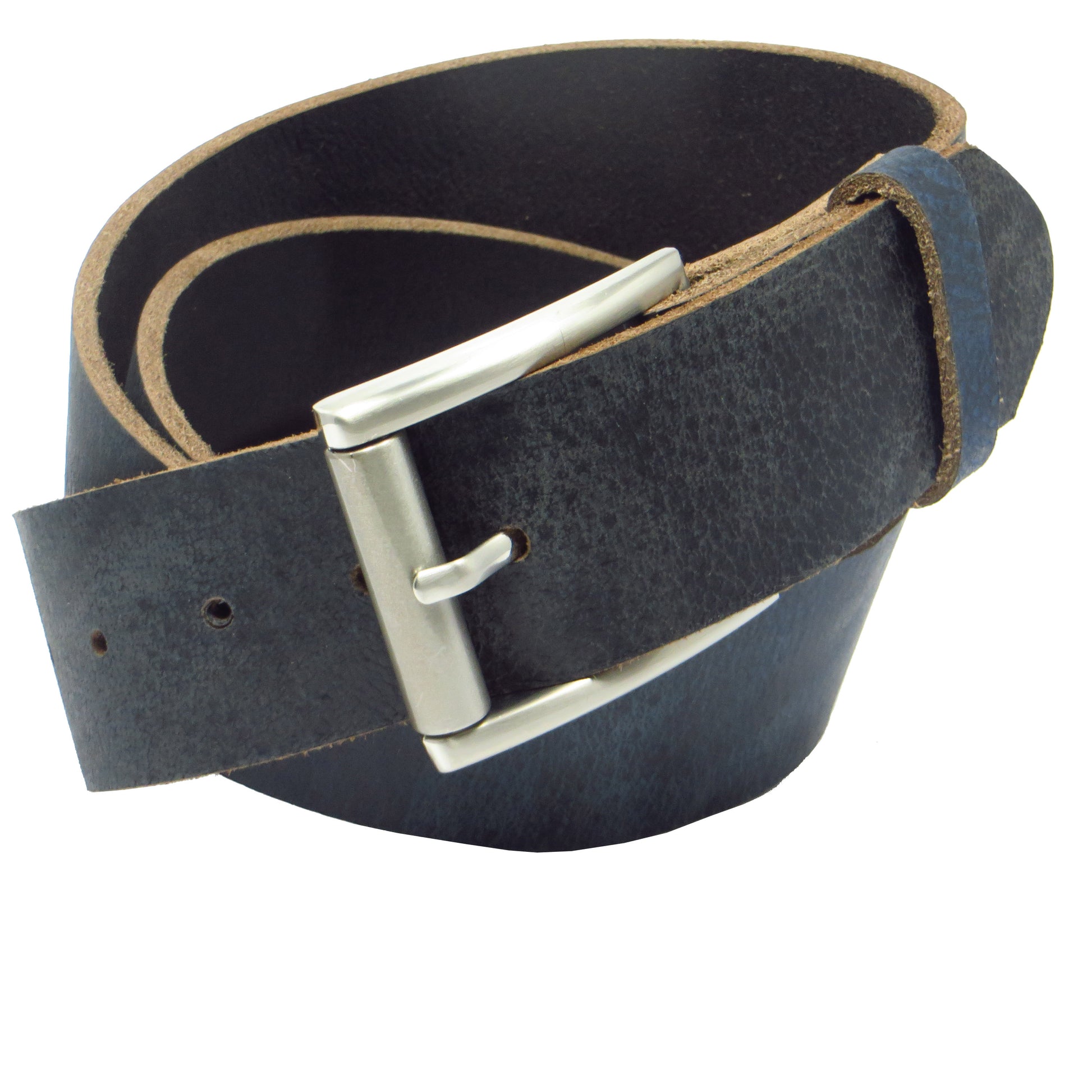 Ledergürtel 4 cm breit blau Büffelleder