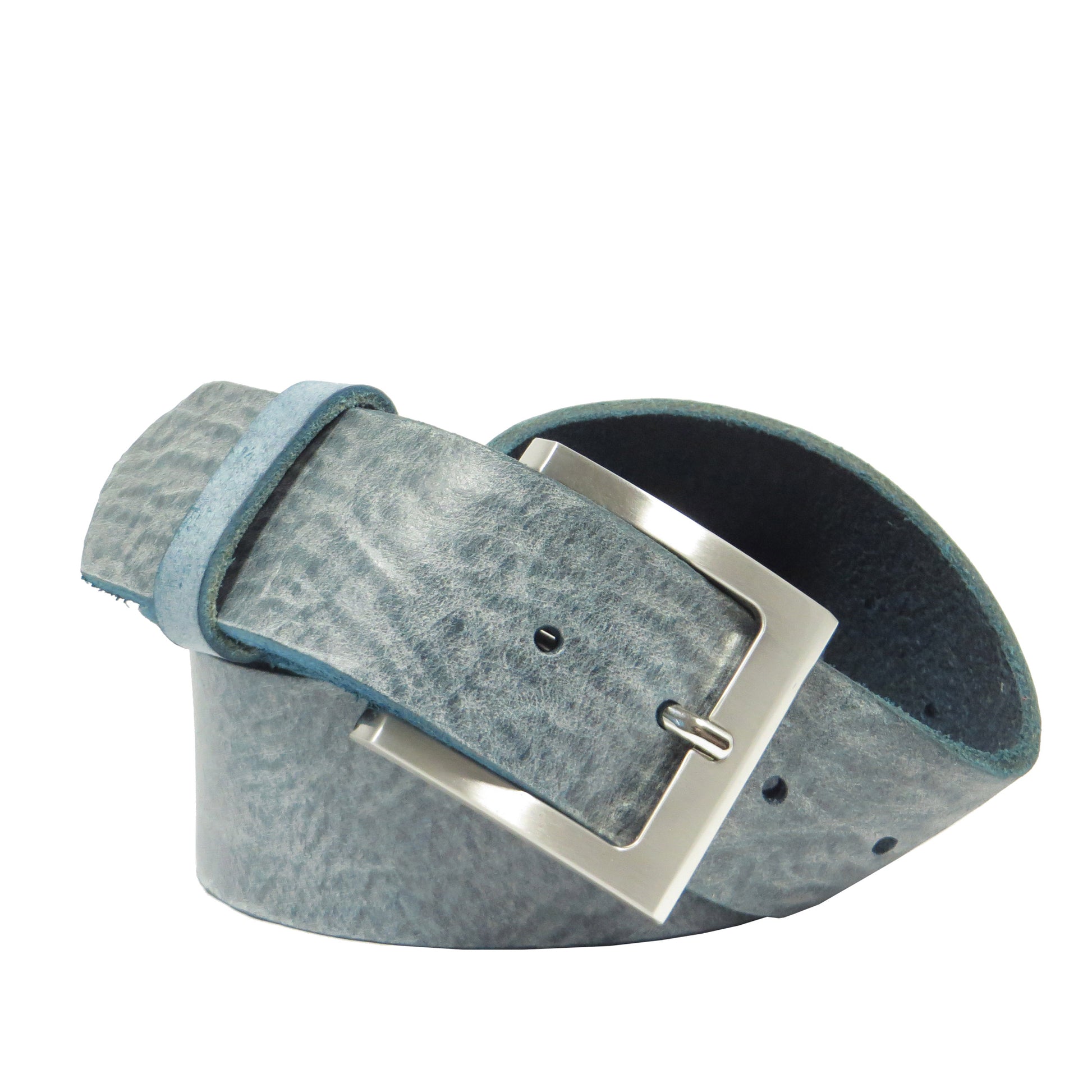 Ledergürtel 4 cm breit Jeans blau Rindsleder