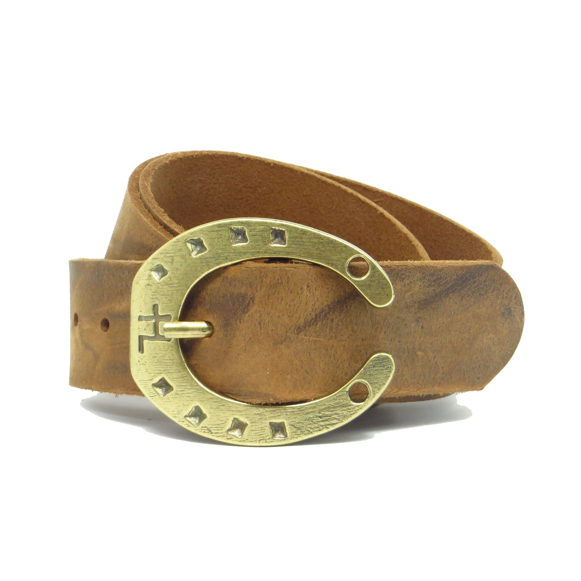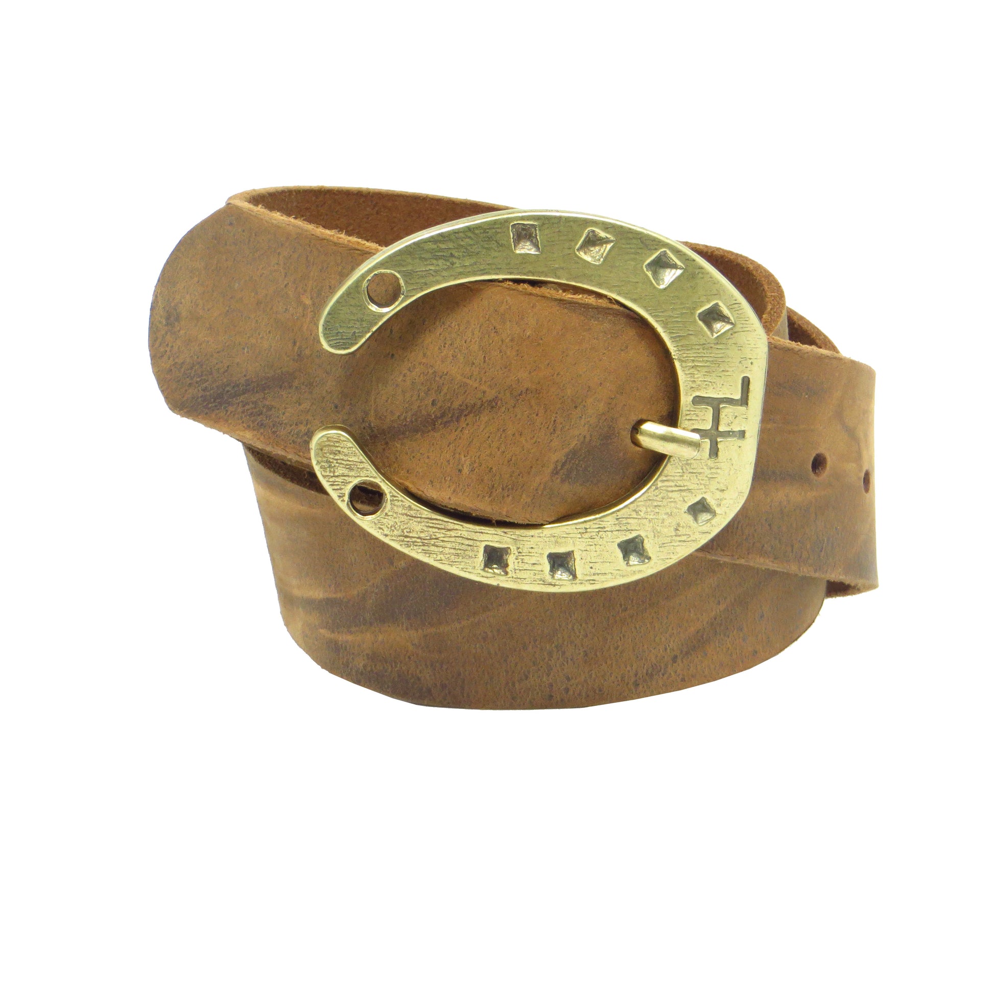Ledergürtel 4 cm breit natur Büffelleder mit Hufeisenschnalle messing