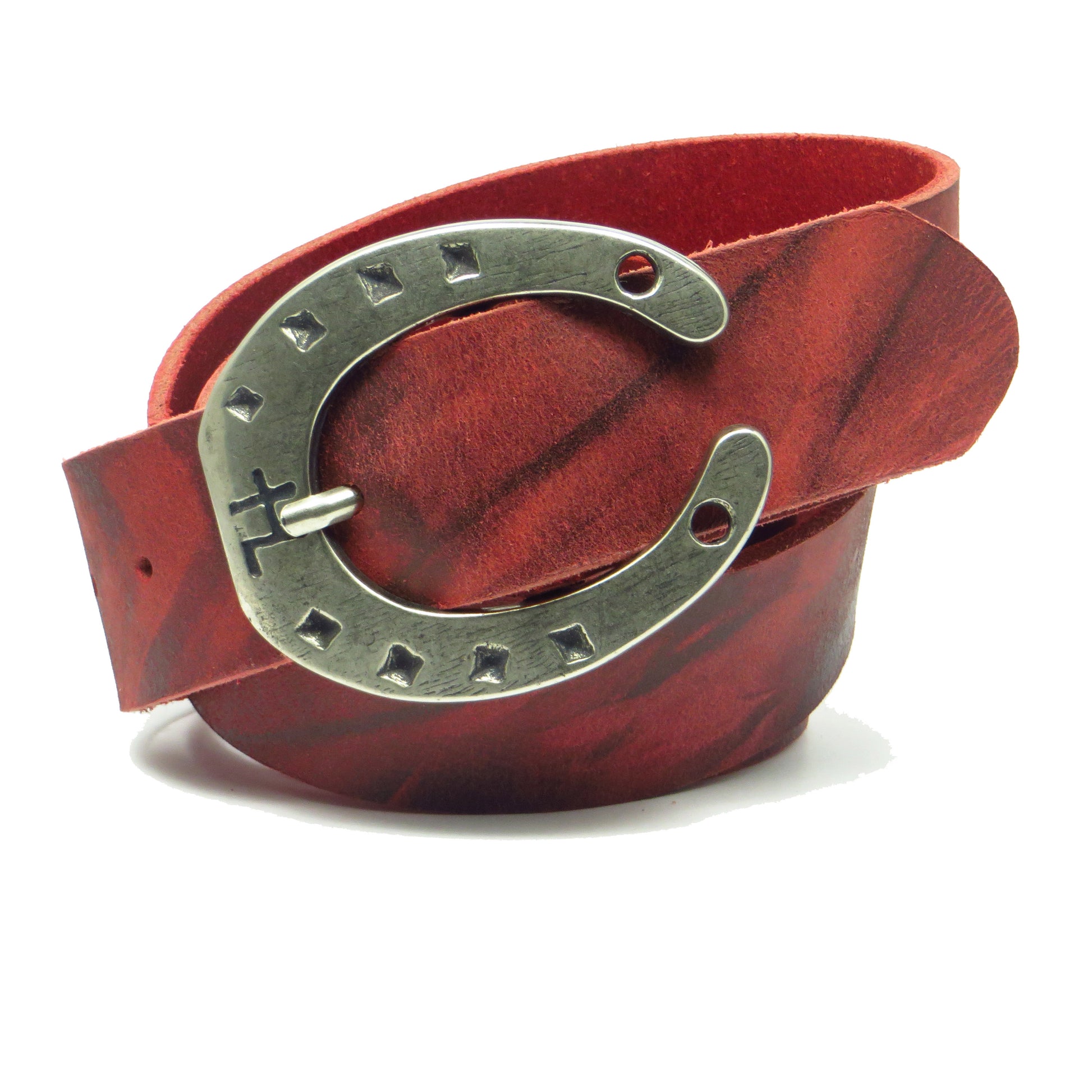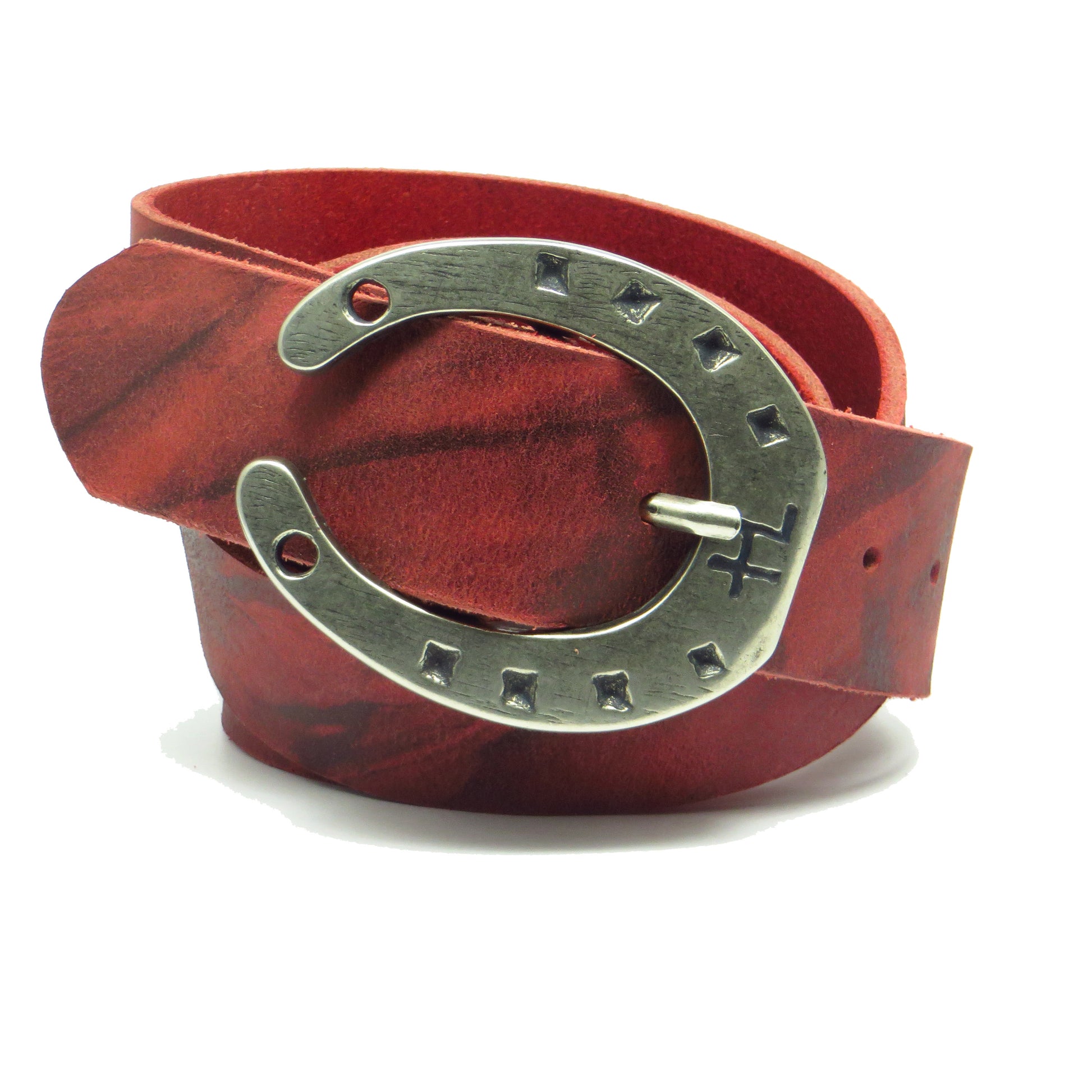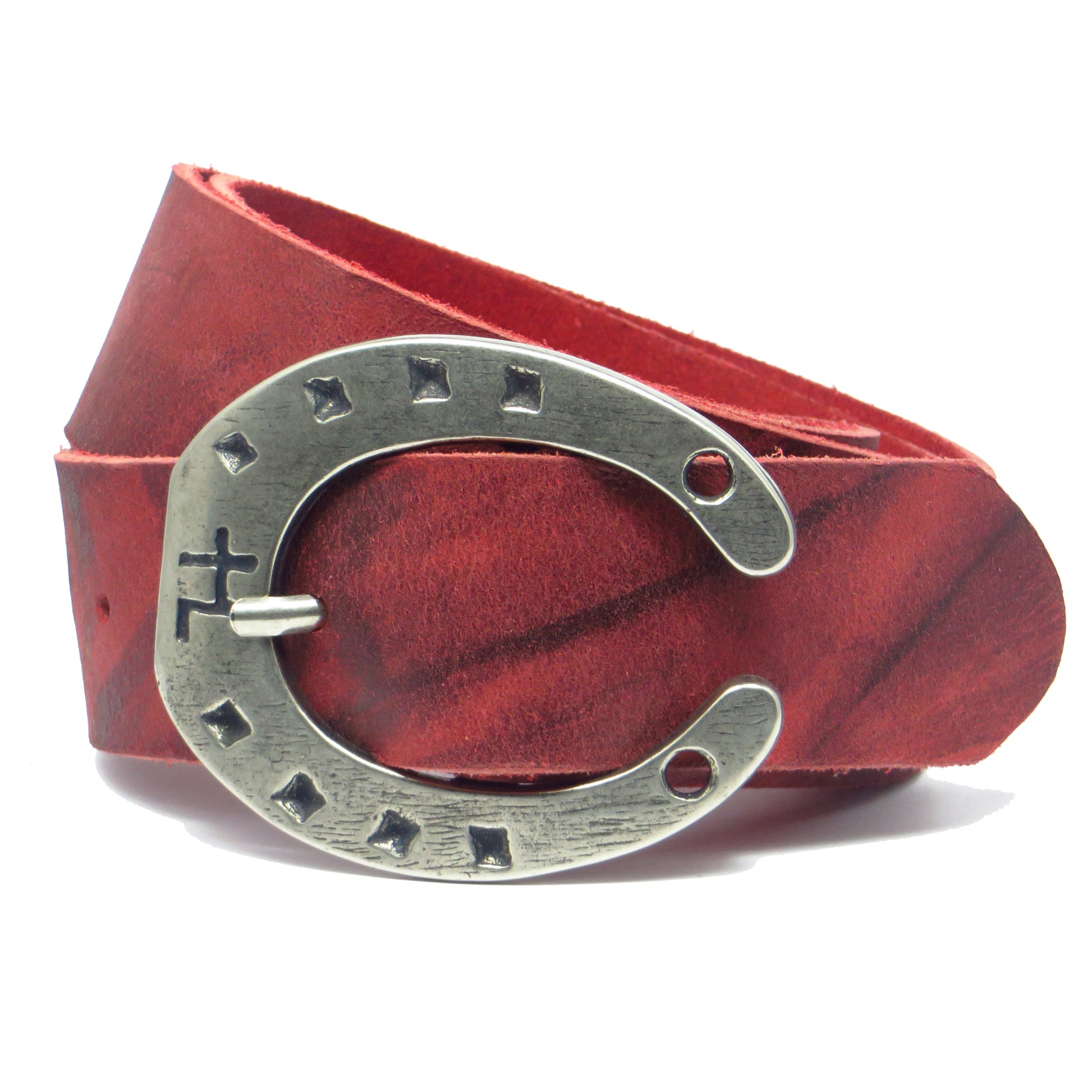 Ledergürtel 4 cm breit rot Büffelleder mit Hufeisenschnalle Silber