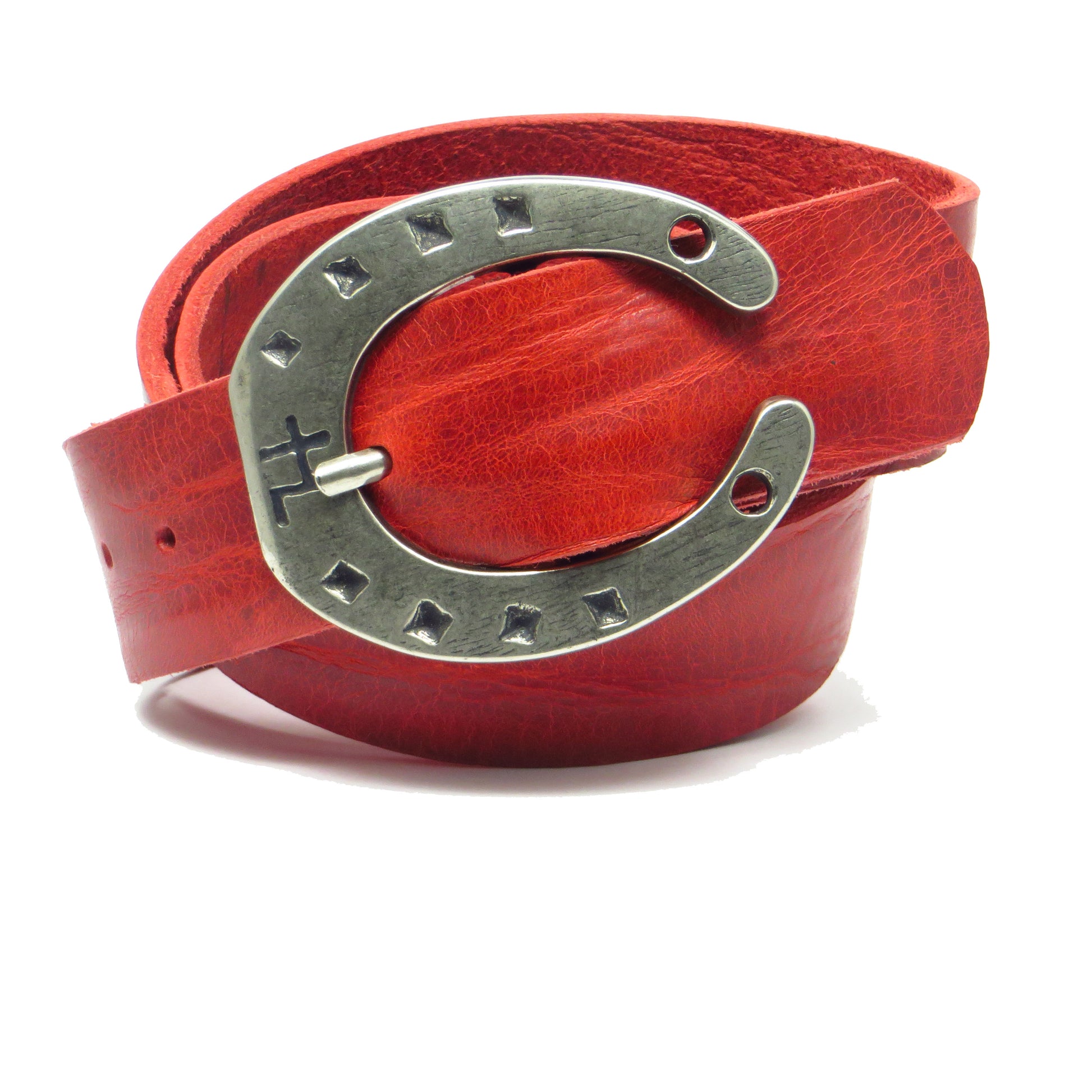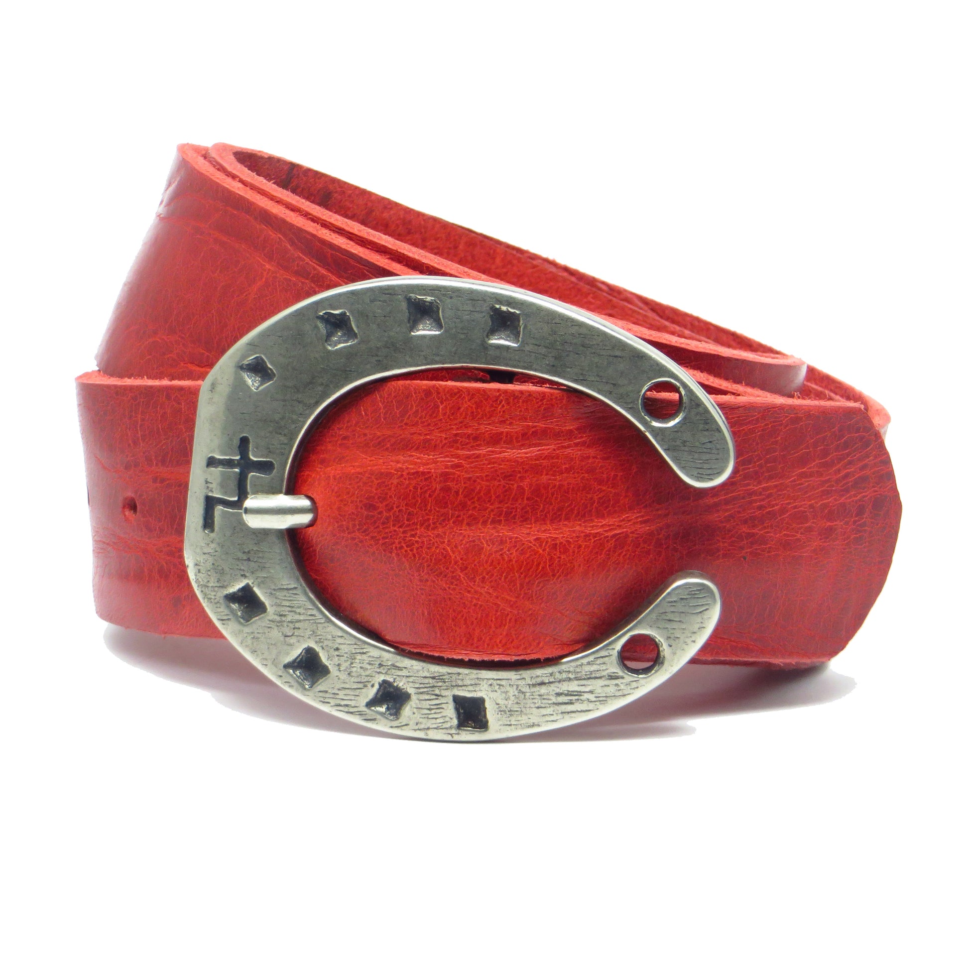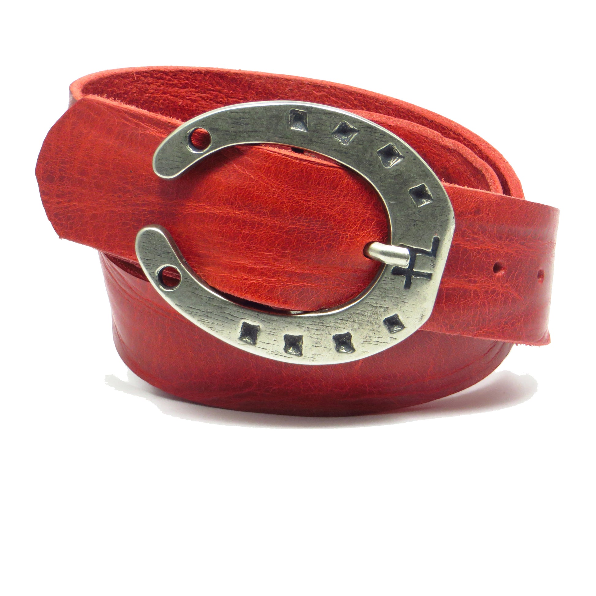Ledergürtel 4 cm breit rot Rindsleder mit Hufeisenschnalle Silber