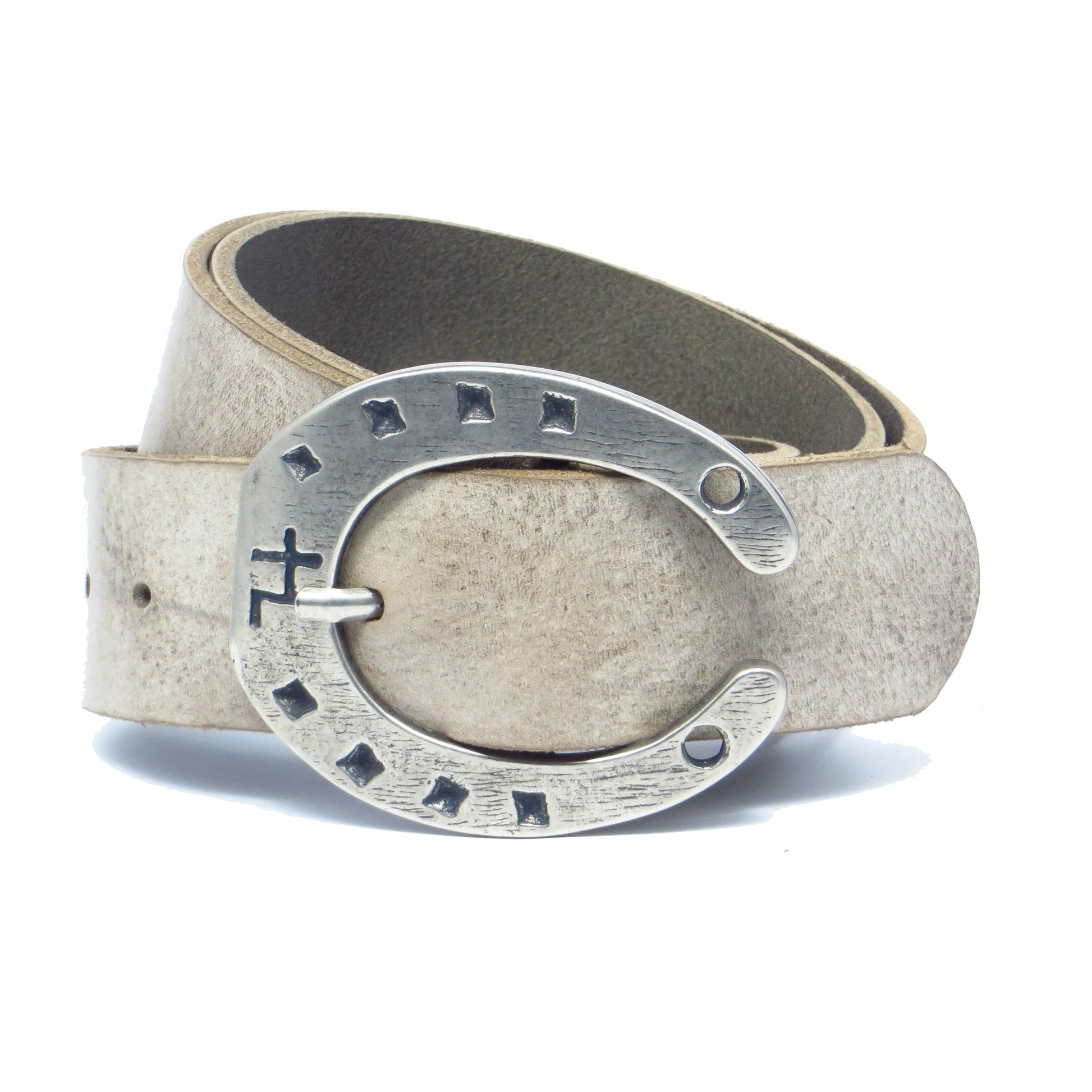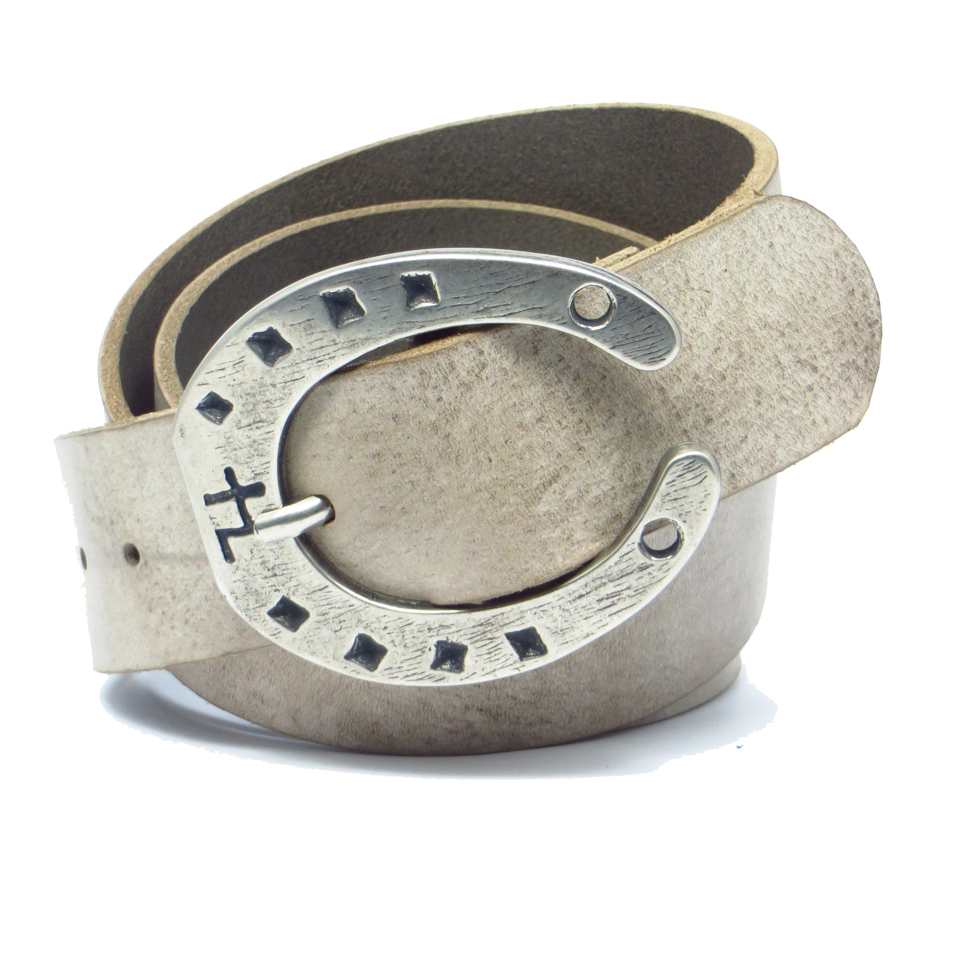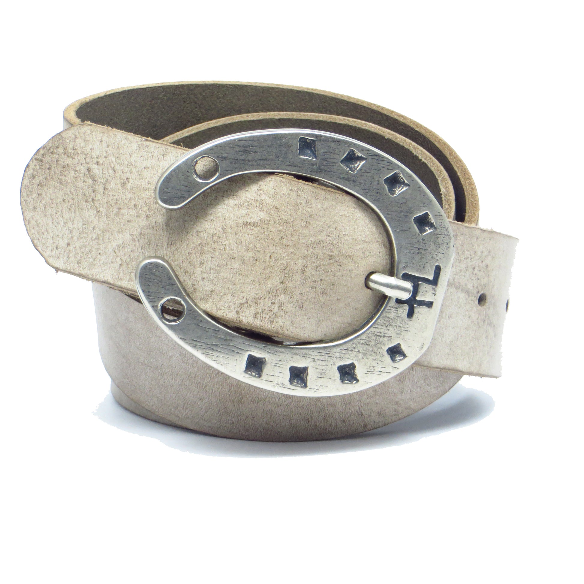 Ledergürtel 4 cm breit schlamm grau braun Rindsleder mit Hufeisenschnalle Silber