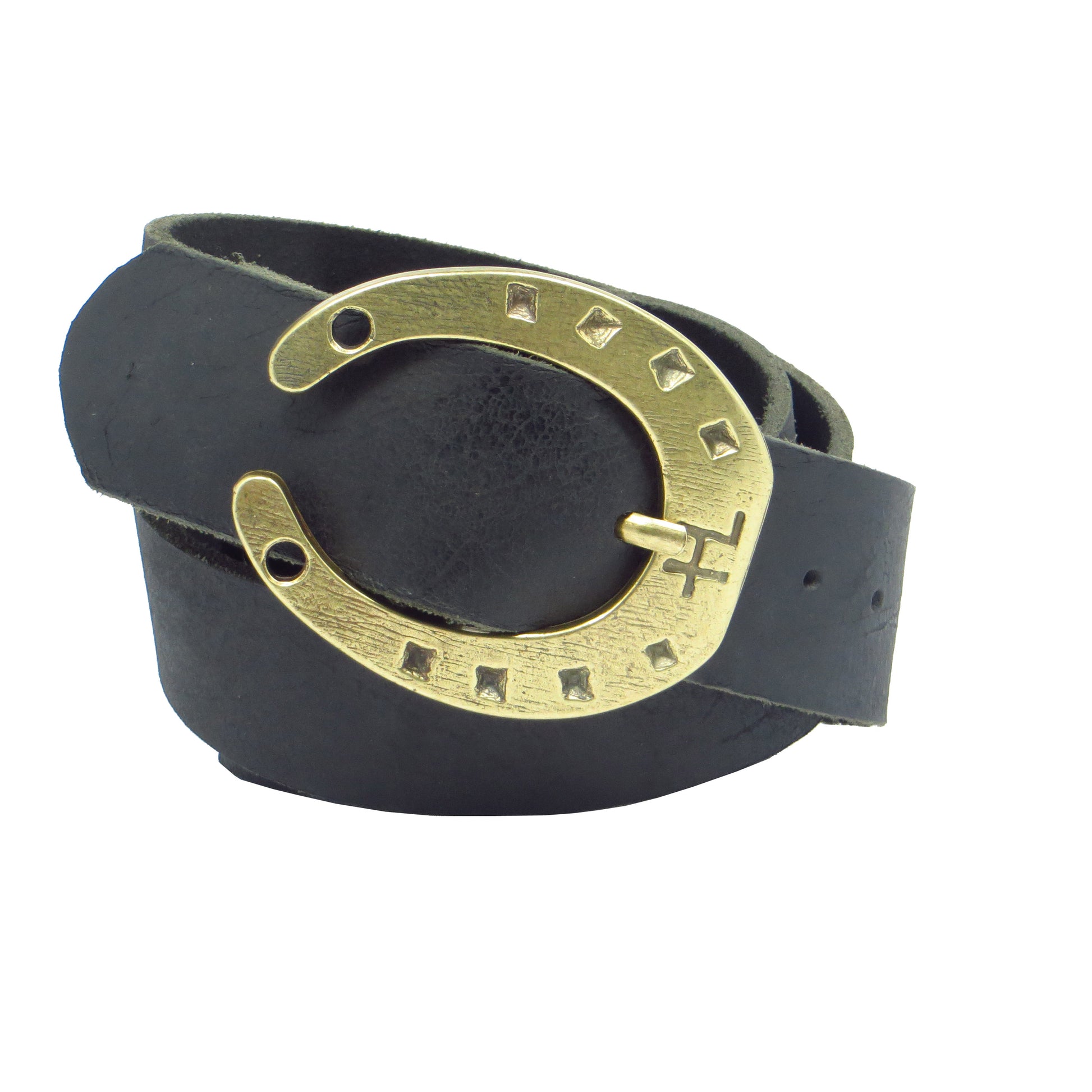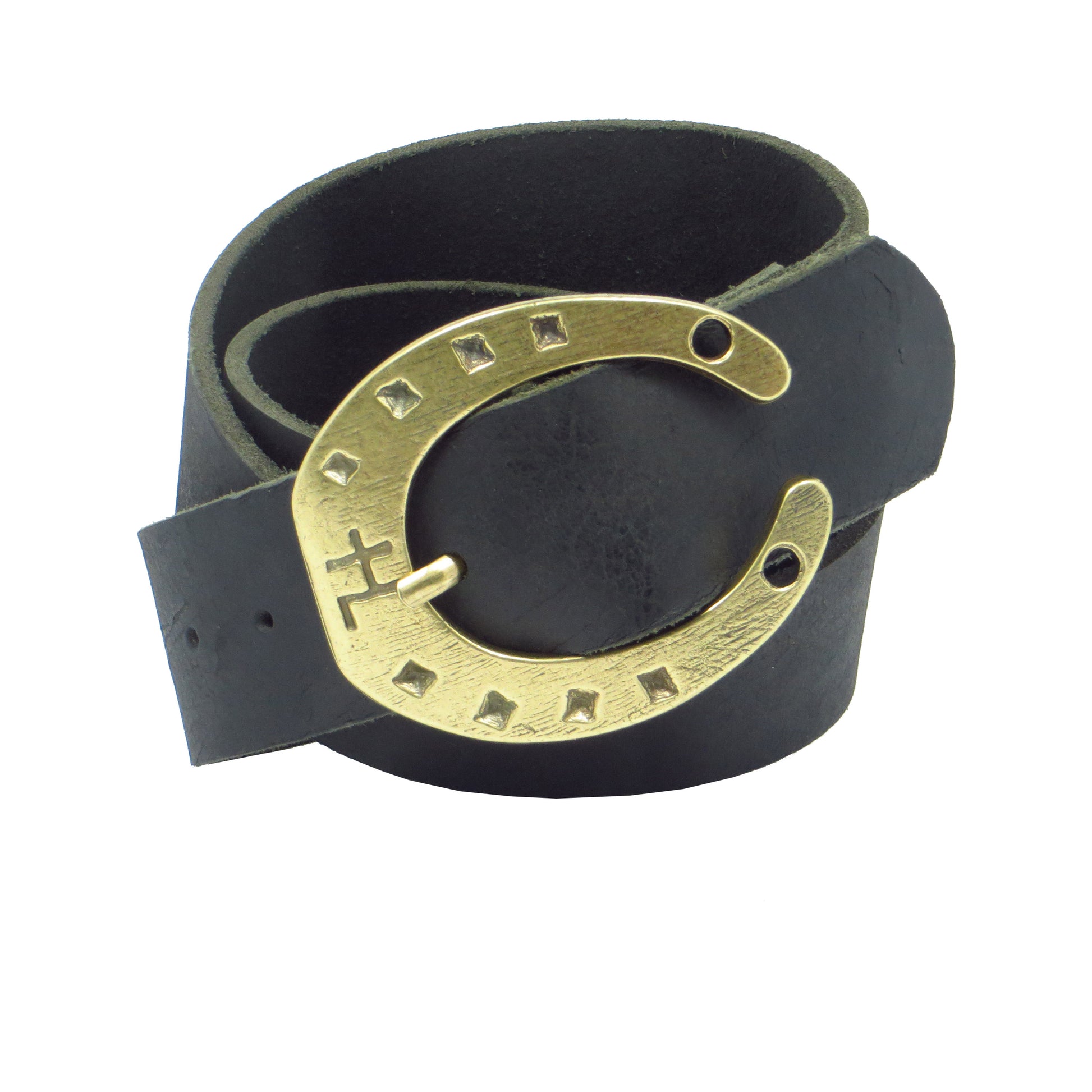 Ledergürtel 4 cm breit schwarz Büffelleder mit Hufeisenschnalle messing